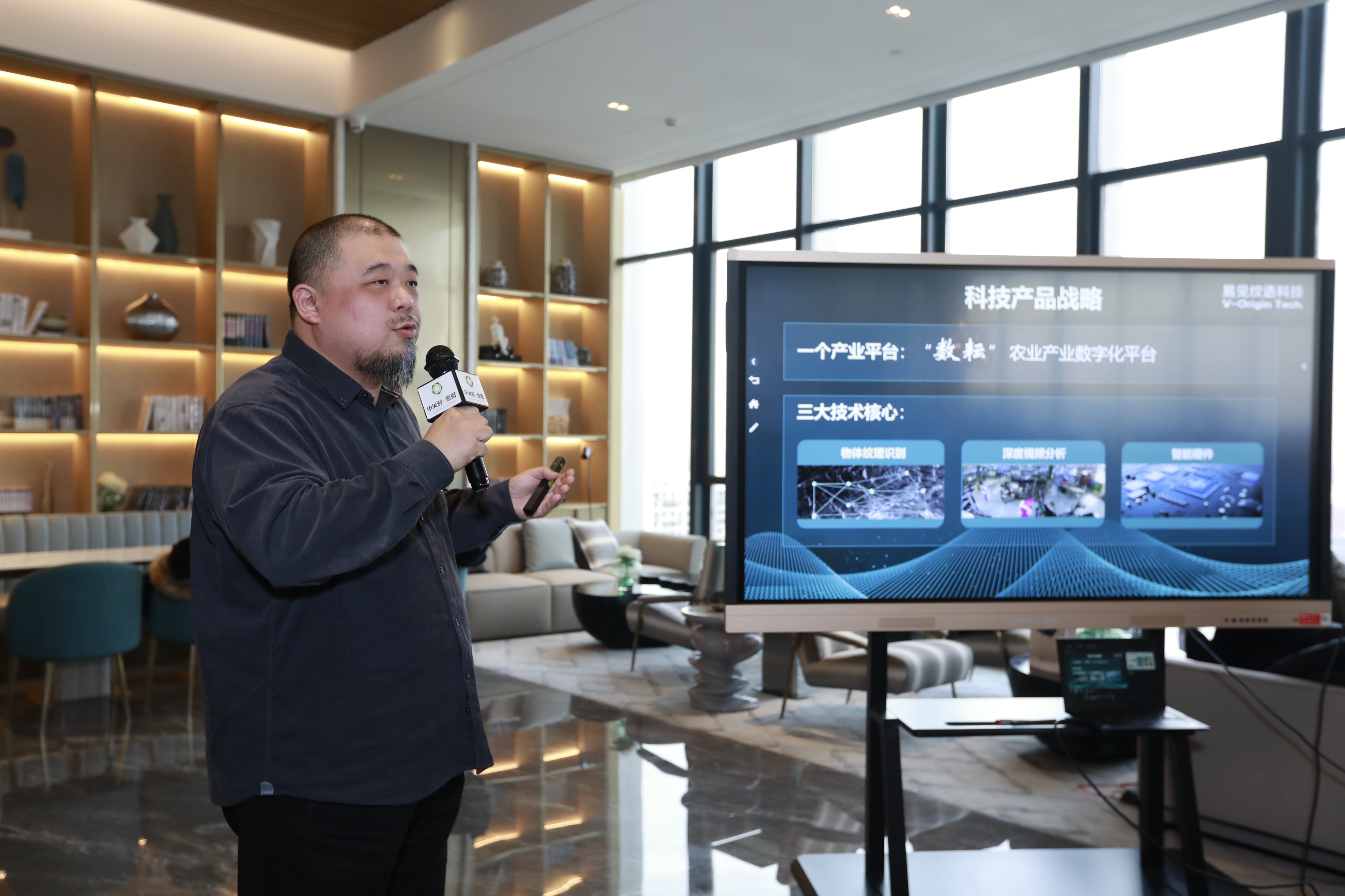 易见纹语科技公司副总经理王卓威介绍了科技在农业方面的应用,利用AI+区块链溯源科技,已经在澳大利亚对红酒实现了溯源。