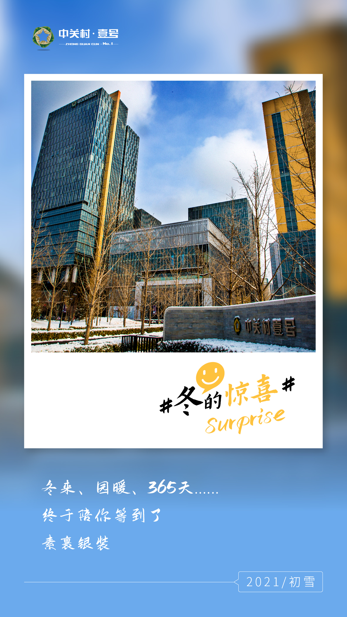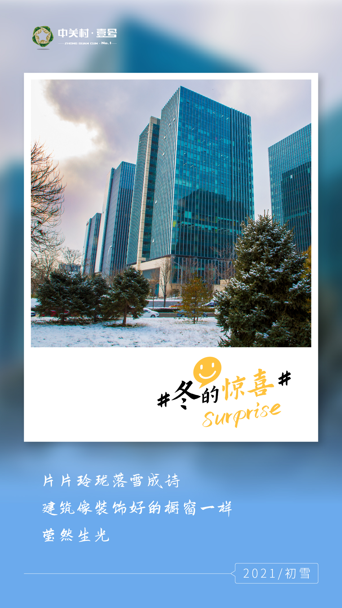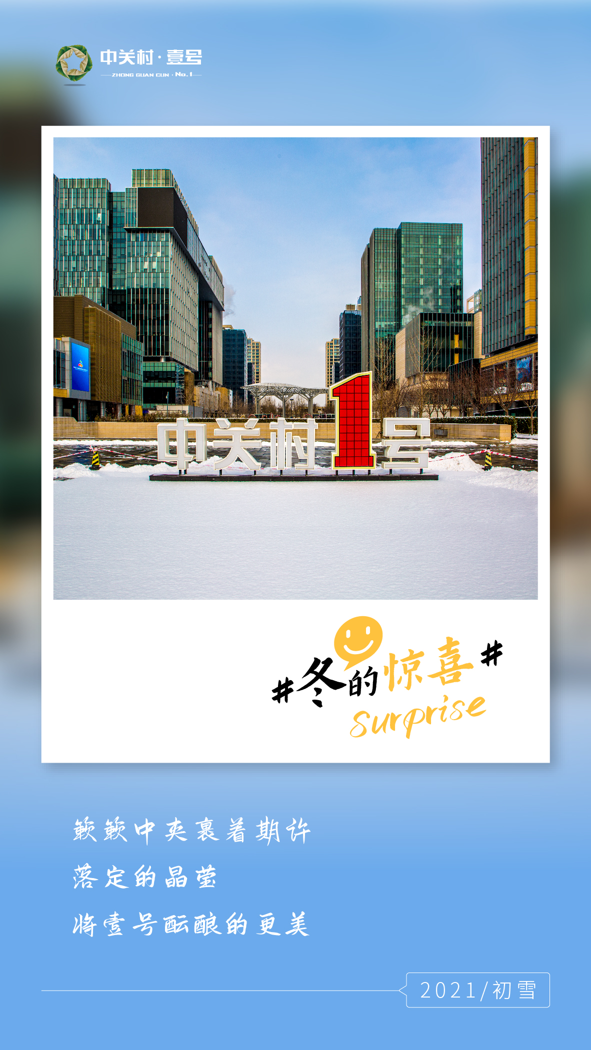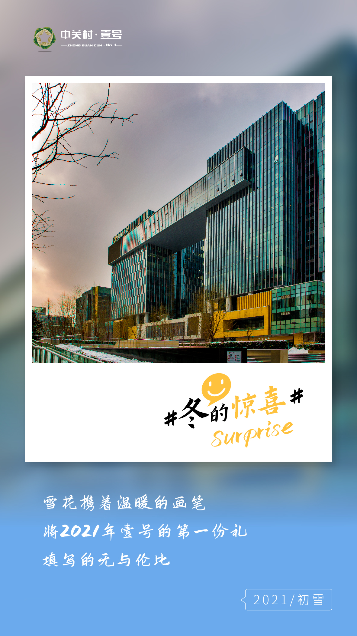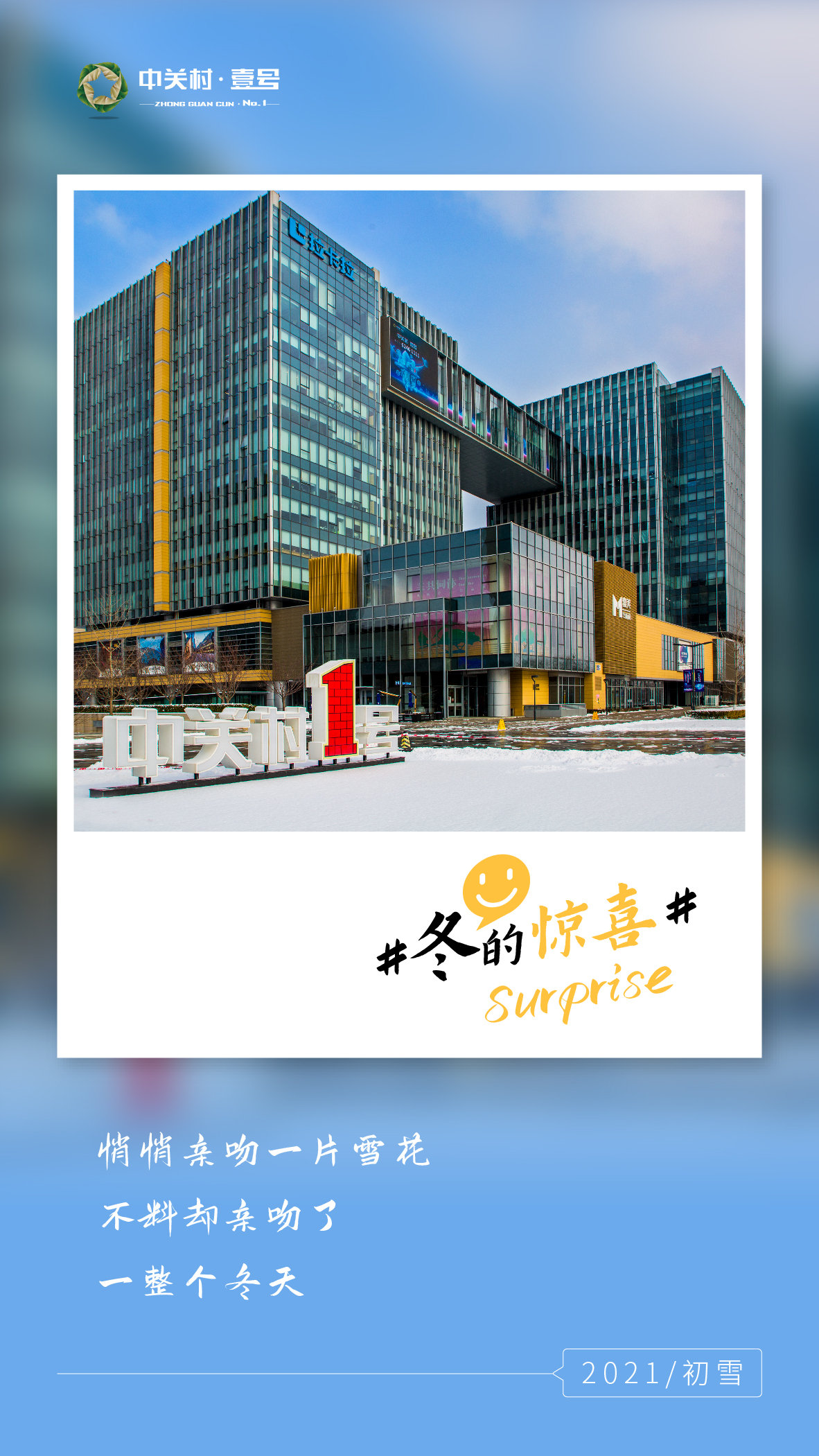 晶莹的雪花给中关村壹号的屋顶和地面