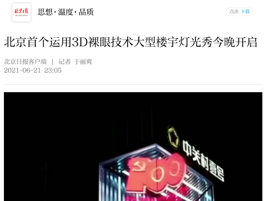 壹热搜 | 你看了么?北京首个裸眼3D+灯光秀首秀又双叒叕登陆了央视新闻、北京日报......
