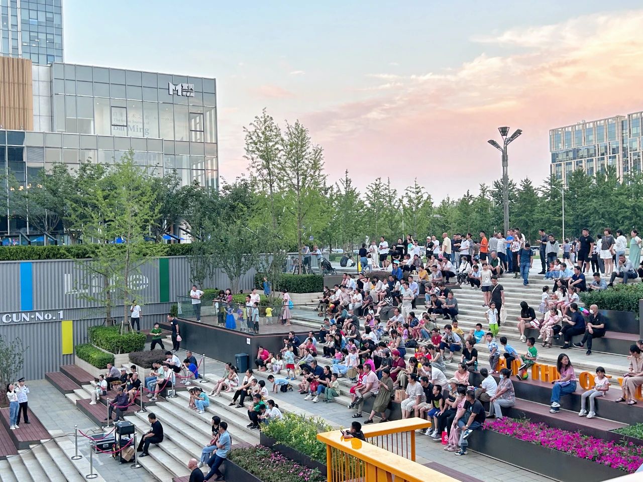 暮色渐沉 园区披上最闲适的衣裳 南广场的下沉广场处 人声渐渐聚拢