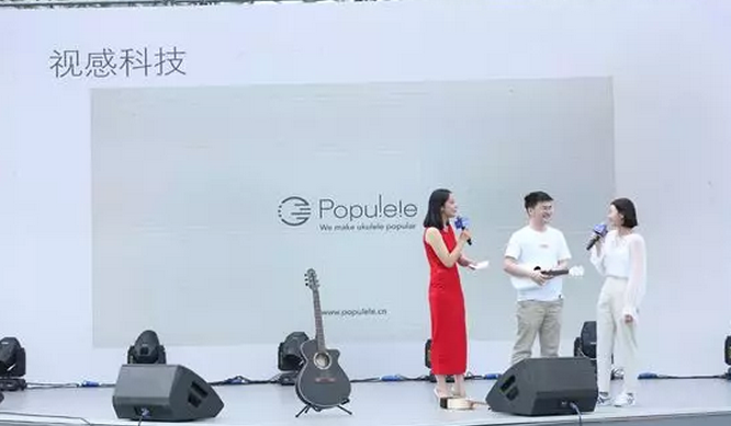 视感科技本次展示了其音乐教育娱乐产品,智能吉他。Poputar智能吉他是视感科技旗下的一款智能乐器产品,通过琴颈LED灯指示左手按弦位置,依靠节奏游戏引导APP右手弹法,帮助初学者以真实吉他版节奏大师的游戏方式快速学会流行音乐的简单伴奏。视感科技的创始人骆石川还在活动现场亲自指导观众使用了智能吉他,使零音乐基础的观众在短时间内可以用吉他进行演奏。